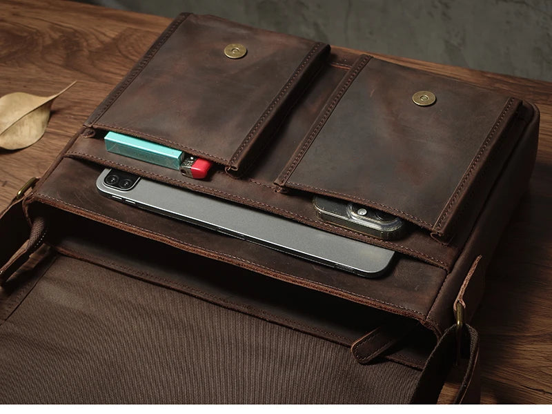 ✔ JOUEZ LA CARTE DE LA ROBUSTESSE : fabriquée en cuir véritable indéboulonnable, avec une dureté qui assure une protection optimale à vos affaires, cette sacoche est prête à encaisser vos journées les plus chargées.