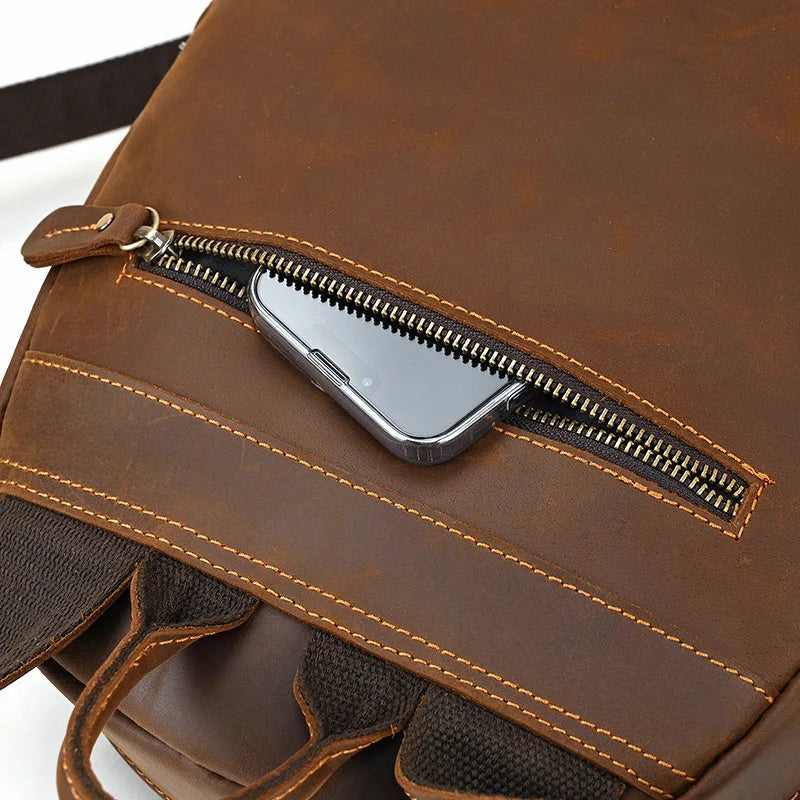 Pensé pour durer, le sac Châtenois offre un cuir de qualité qui se patine avec le temps, renforçant son charme vintage. Ses bretelles réglables assurent un confort optimal, tandis que ses multiples poches zippées vous permettent d’organiser facilement vos affaires personnelles, de la tablette aux accessoires indispensables.