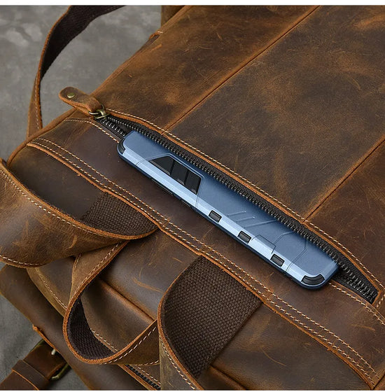 Emportez votre quotidien avec élégance grâce au sac à dos en cuir véritable VÄSTER, pensé pour les esprits urbains, étudiants comme professionnels. Ce sac ne se contente pas de transporter vos affaires, il raconte votre goût pour l’authenticité et le style vintage.